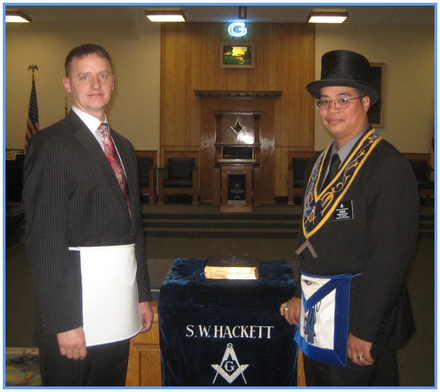 our newest Fellow Craft by Brother Bob Salini, JW, who obligated him a