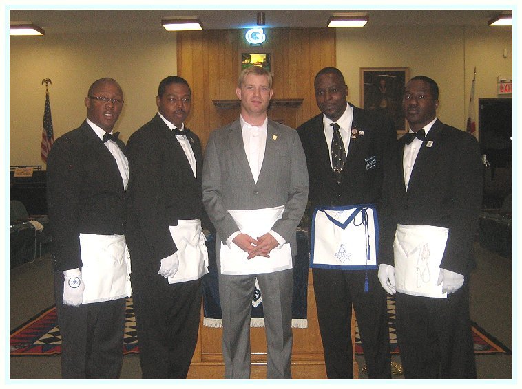 Brother Rowden poses with our visiting Brothers also from Gustavus A. Thompson Lodge #79. Brother Assyrian Brunson, Brother Robert Merchant, Brother Raymond Gray and Brother Darren Brown. Thank you so much Brothers, for honoring us with your presence.