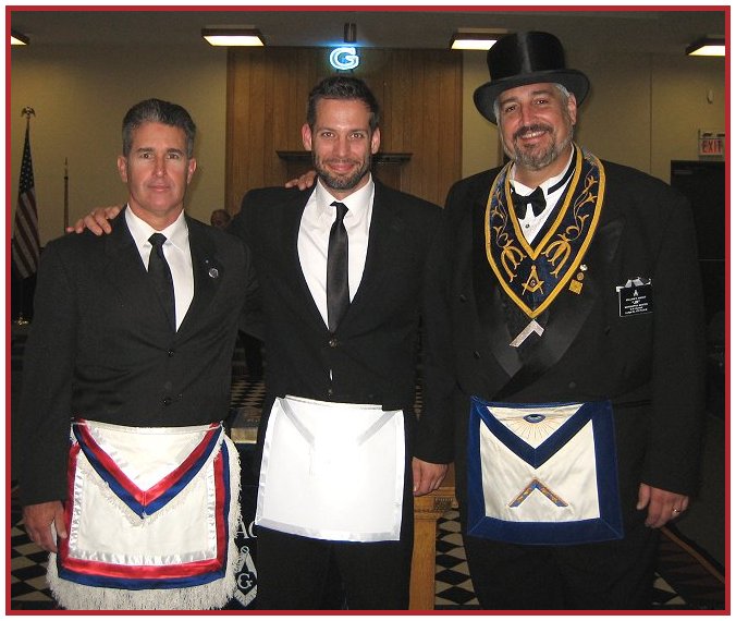 We sincerely thank our visitors for the evening. From left to right: All the way from Canada to join us is Very Worshipful Brother Tim Mayner of Millennium Lodge #2000 and Aurora Borealis Lodge #201 of Fort McMurray in Alberta. In the center is Brother Chris Eaton of Fidelity Lodge in San Diego, and next to him on the right is Brother Yul Eblamo, Senior Steward of South West Lodge in San Diego. Brother Mayner was in the